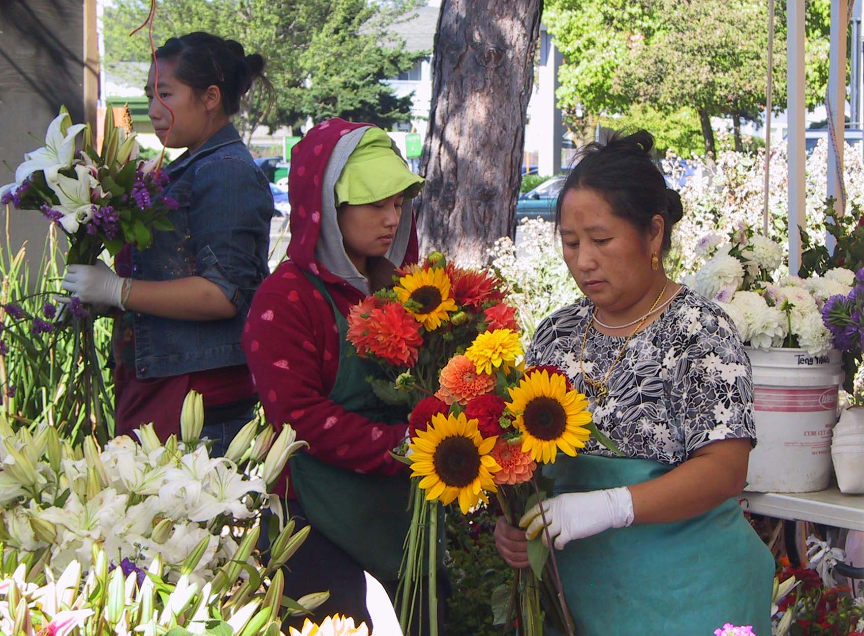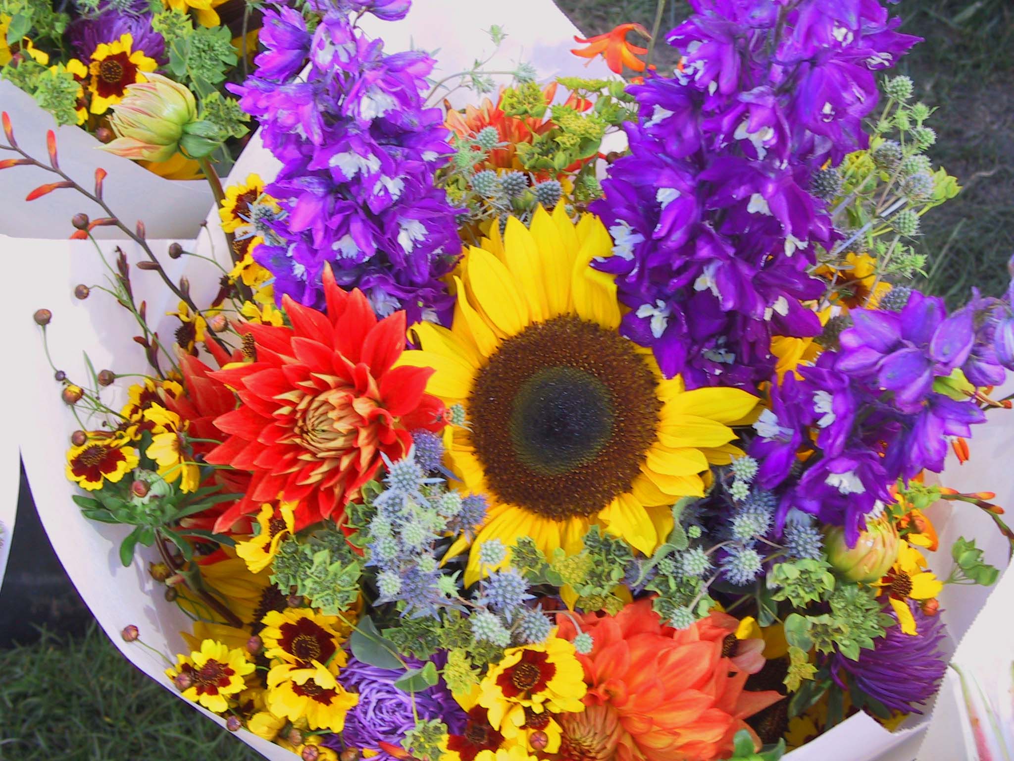 Fresh flowers are another reason to go to farmers’ markets. For some reason they are selling for very low prices this season, as in $10 for a bouquet that I must divide into two, because it is too big to fit in any of my vases.