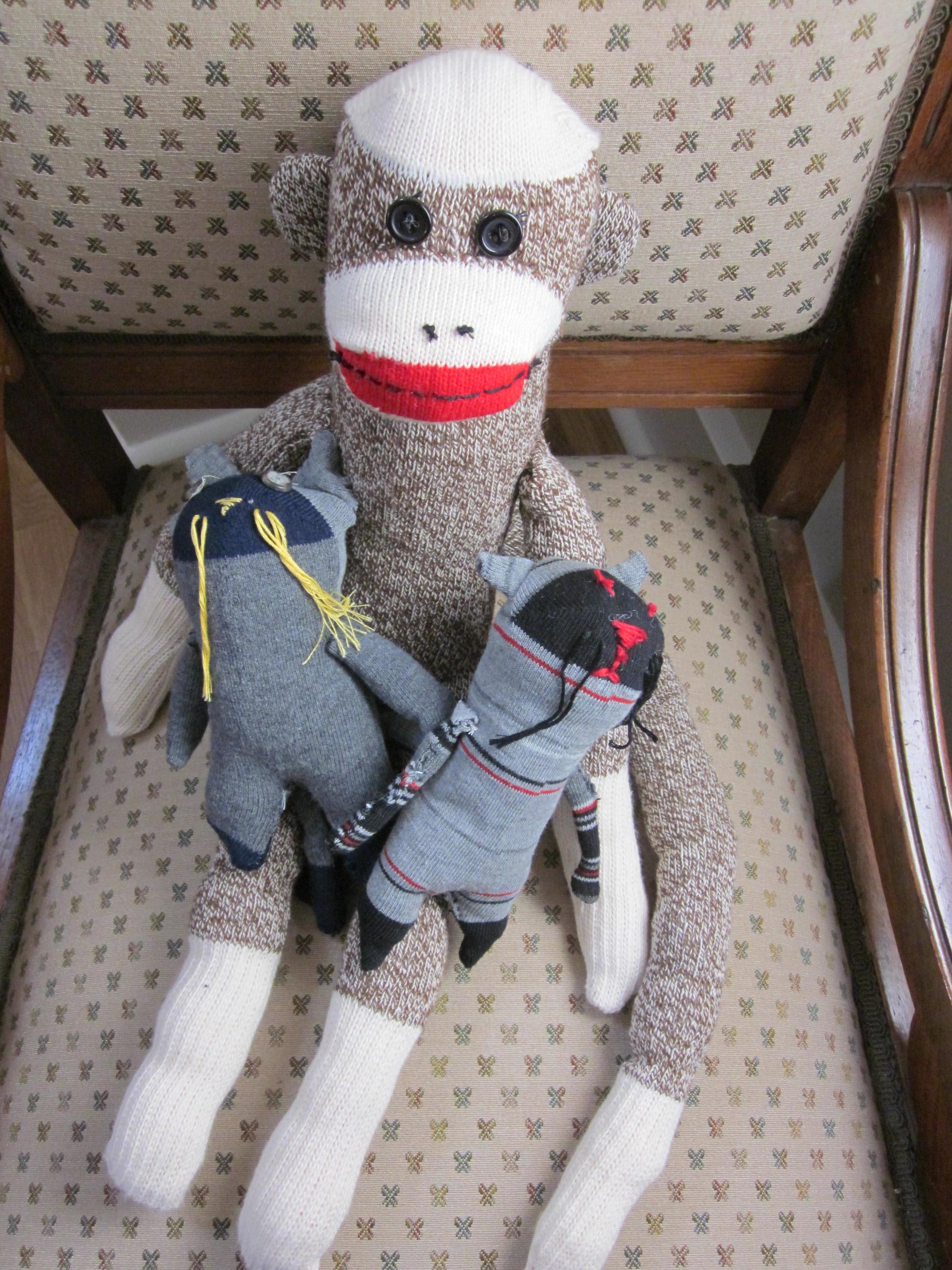 I am quickly advancing up the evolutionary sewing ladder.  From sock animals — reptiles and birds  (hey! it’s a penguin) — in January, to mammals in February.