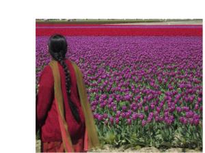 Tourists just like us were snapping pictures while crouched among the flowers, overwhelmed by the endless streams of red, purple and yellow.  Some were dressed as brightly as the flowers.  All seemed pleased to be there.  The tulip fields had not let us down.