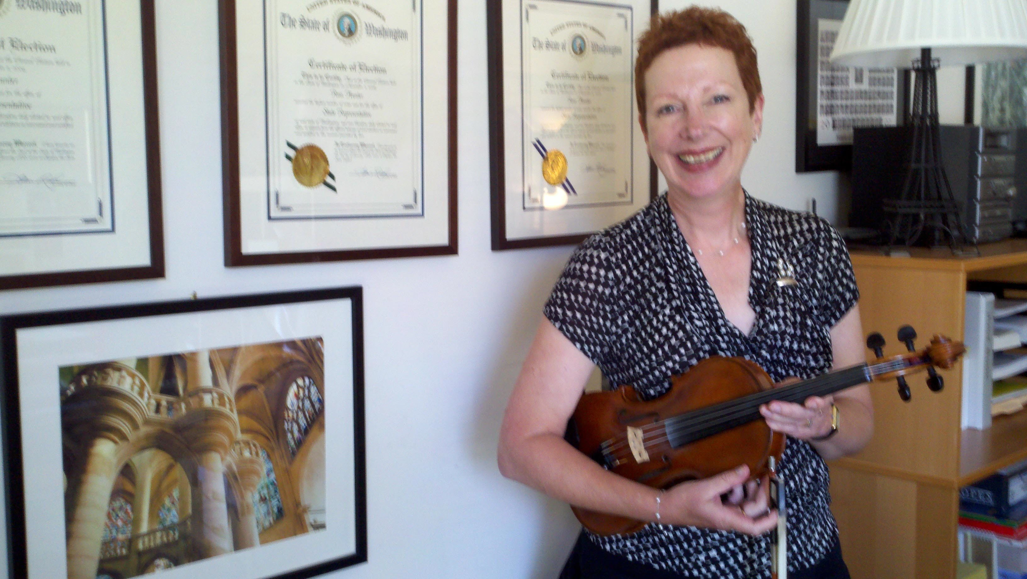Marilyn always finds a way to connect with other musicians, whether she is playing classical music in a trio, jamming with other legislative staffers in the state capitol, or playing with her latest band, “Marilyn and the G Strings,” also known as the “wine drinkers with a ukulele problem.” She describes the group as “friends with shared interests that go beyond the enjoyment of fine wine.” When the legislature is in session, her life is harried. Telephone and email exchanges are often discordant. Creating music at the end of the day helps relieve the stresses of work. She says that legislative aides with bosses from both political parties find harmony as they bow, pick, strum and sing together. When the legislative session is over, one of the G Strings’ regular gigs is in a Kirkland wine bar, an obvious place to indulge her third passion.