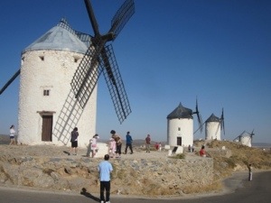Seeing the contemporary windmills made me want to visit La Mancha, Don Quixote’s home, though I had no idea where in Spain to find it. Happily, we learned that La Mancha, antiquated windmills and all, was on our bus’s route south and we had a chance to see what this classic literary figure pitted himself against in battle.