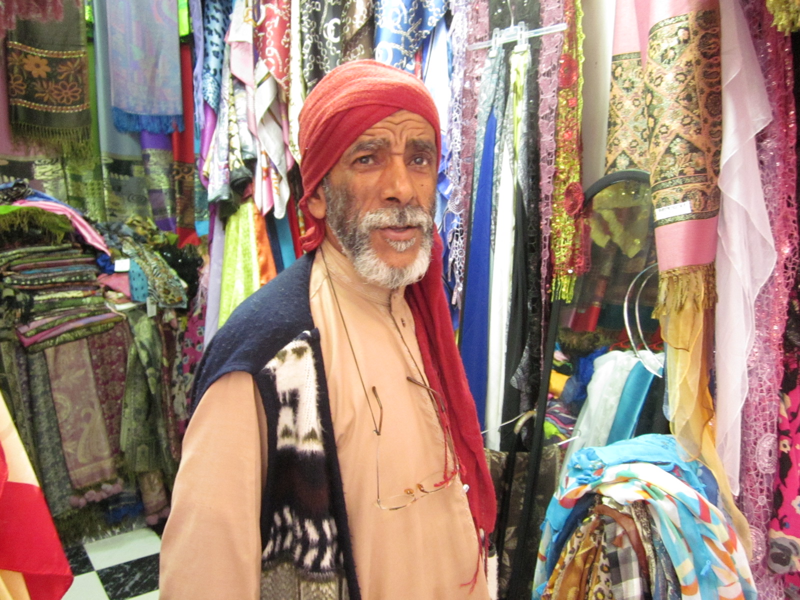 Spending a few hours wandering through the medina (market) of Tangier brought us in touch with a women’s clothing stall-keeper affectionately known to his friends as Ali Baba, a delightful man whose English skills allowed him to keep us entertained as we negotiated prices for several scarves. “If I sell these to you for less than eighty dirhams (about $9) I will be forced to give up my business. I will no longer be able to earn a living.” Nonetheless, he gave up one for eighty and a second for the same amount. His last offer was two hundred fifty dirhams for three scarves. A nice deal for him and sounding great to us in our confusion. We were happy to pay, knowing that we had not driven him to bankruptcy, and pleased that the outcome of the negotiations brought him enough satisfaction to let me take his picture.