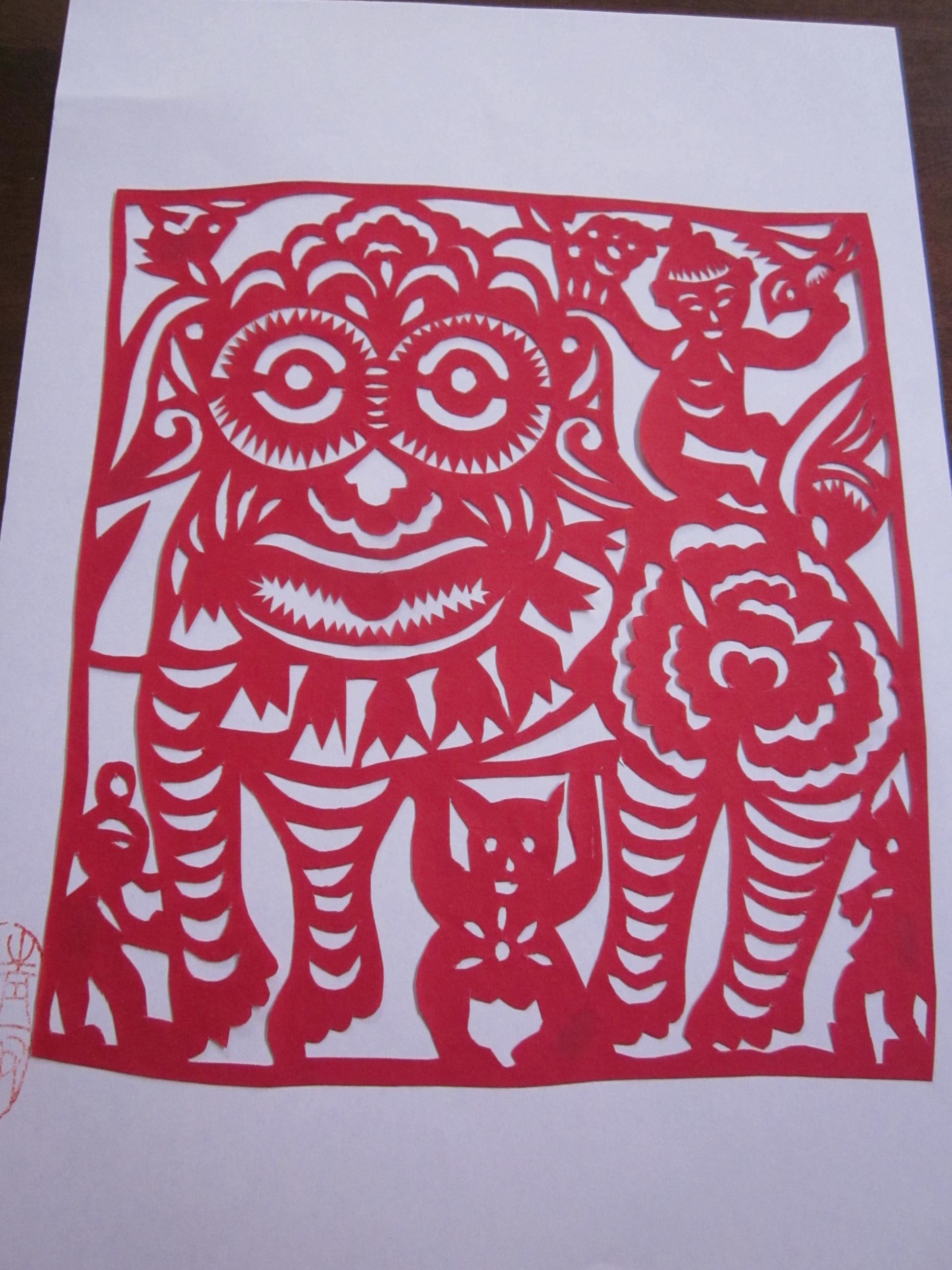Paper-cutting, creating beautiful designs and scenes out of flimsy red paper, was part of the arts curriculum. Remember kindergarten scissors? The kind with rounded ends that worked best on tissue paper, also on other kids’ hair? The Chinese teachers armed these children with sharp-pointed ones. The teacher handed me a pair and instructed the four-year-old sitting next to me to teach me a lesson, which she did, though not in the way intended. My good fortune came after a few vain tries, when the girl agreed to complete my assignment by cutting an animal figure for me in about a minute and a half out of a fresh sheet that I hadn’t had a chance to ruin.