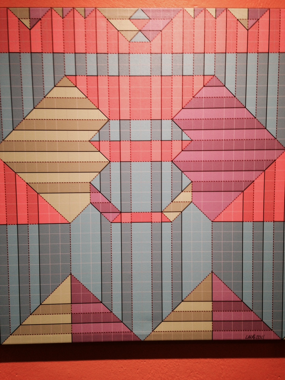 This photo shows the folds necessary to create something. Judging from the number required, I’d say something complex. Akira Yoshizawa, also known as the “father” or “grandmaster” of origami, devised a system of folding instructions using dotted and dashed lines. I can’t tell from this how to locate the starting point, but the number of folds is way more than you’d need to make a paper crane.