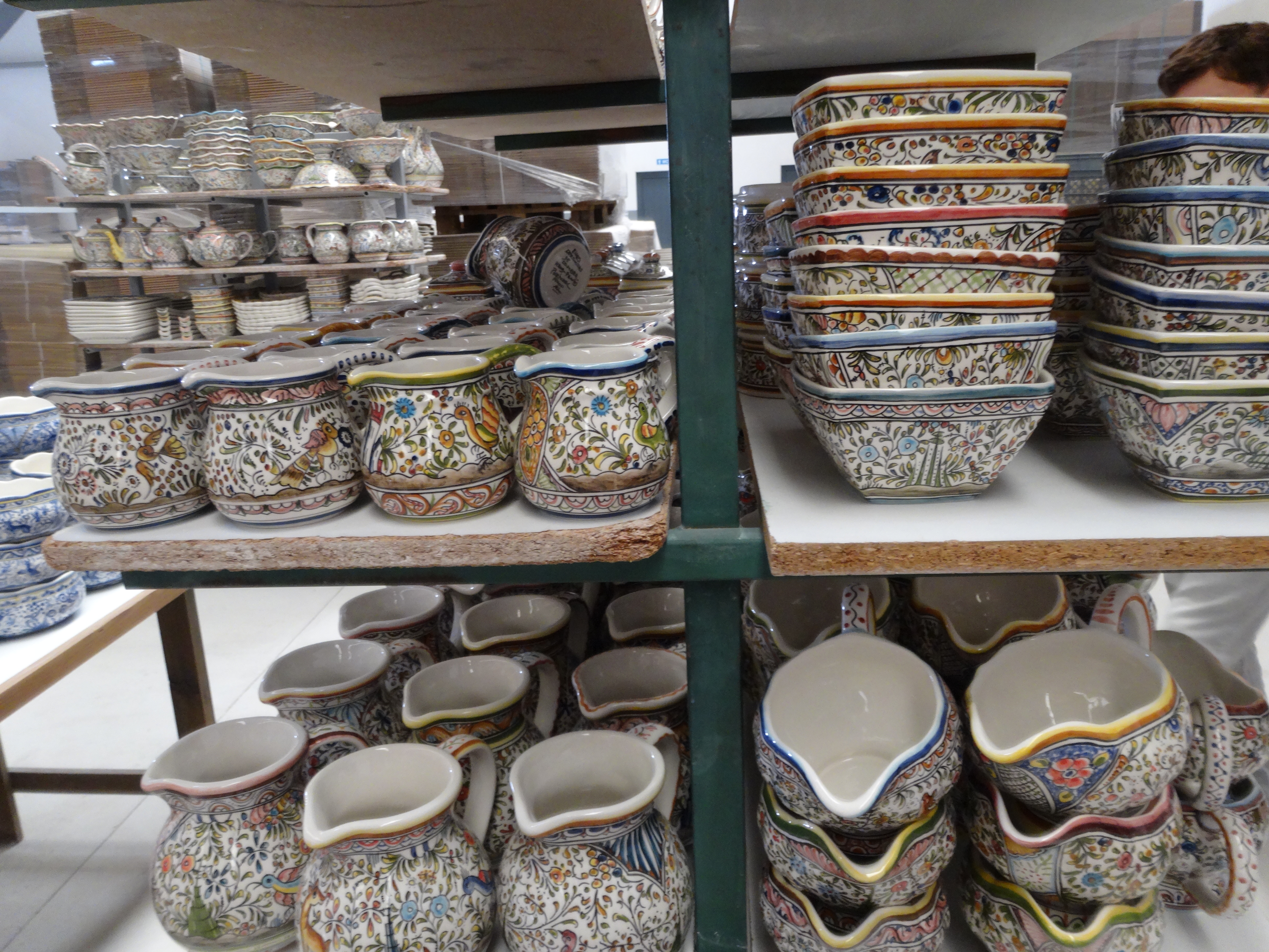 On a guided tour of Portugal, our group visited Ceramicas de Coimbra and saw demonstrations of the steps involved in creating glazed ceramic ware — vases, dishes, flower pots, trays, pitchers, tea pots, and more — also called majolica. Painting the completed pieces was the mos