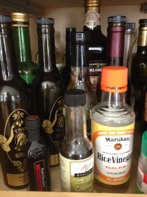 vinegarSome cooks are not tied to recipes. They make use of whatever ingredients they find in their cupboards or their refrigerators, and rather than search grocery stores for exotic ingredients they’ve never heard of, they create interesting concoctions using what they have. I am not one of those cooks.