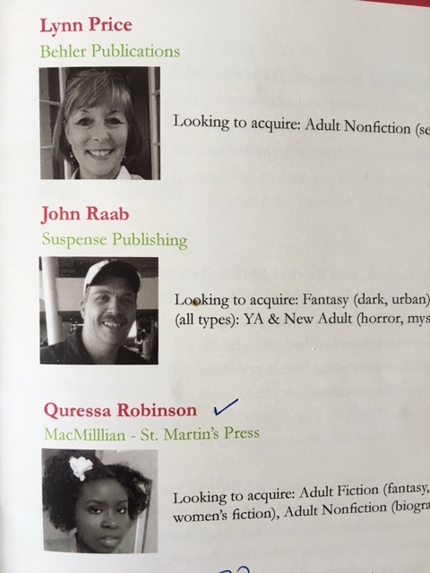 On the second day of pitching, I chose a friendly looking editor whose bio said she was looking for mysteries and women’s fiction.