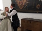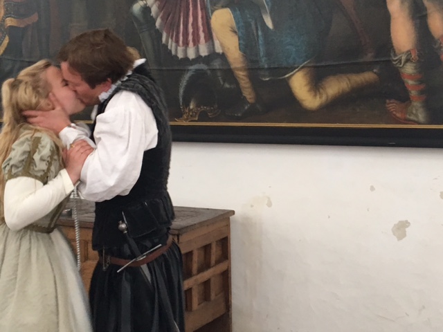 Seeing this niche at the entrance pleased me; still it was just another castle. That is, until I began to pay attention to other people strolling through the halls and popping up in various rooms. They were clearly not tourists. Nor were they locals, unless locals were fond of late 16th century dress. They were actors.