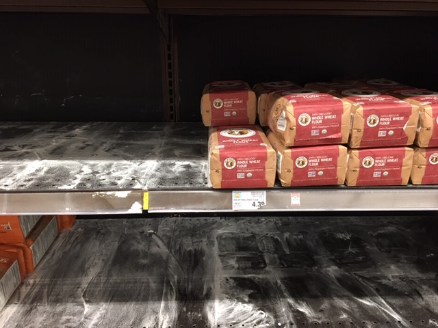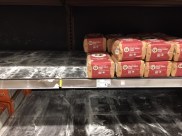 Cities in our part of the country do not invest heavily in snow removal equipment, which means that streets are often impassable and people are stuck in their homes. This explains why so many people have hung out at the supermarket the past two days and creating a setting that matches the kitchen of Old Mother Hubbard.