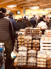 After standing in the longest checkout line in my personal history of grocery shopping — there was a similar line for each all eight cash registers and self-checkout — we asked the checker how she was holding up. “When I went home last night I was exhausted, but I told myself it would be a lot less busy today,” she said as she collapsed over her register. Looking outside, I’d say the rush to shop is over.  Now the checker will have to face miles of backup on the roads as everyone leaves work early to avoid traffic.