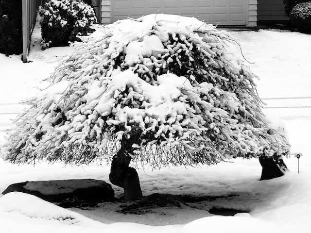 All week weather forecasters have had a heyday, sucking up much of a thirty-minute newscast with maps of where the snow would first hit, where it would travel next, at what hour it would begin, and when it would stop. Reporters kept busy sticking their rulers in the snow in every surrounding community to show us how many inches had accumulated.  Of course it’s not a simple snowstorm, it’s “snowpocalypse.”