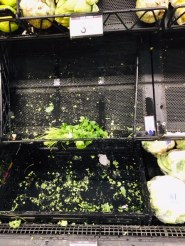 “You’re going to have a lot of fun here,” said the woman, giggling as we entered and she exited the supermarket this morning. We grabbed the last cart and wheeled it toward the produce section. But wait. Where did the bananas go?  The broccoli? The apples? The lettuce?