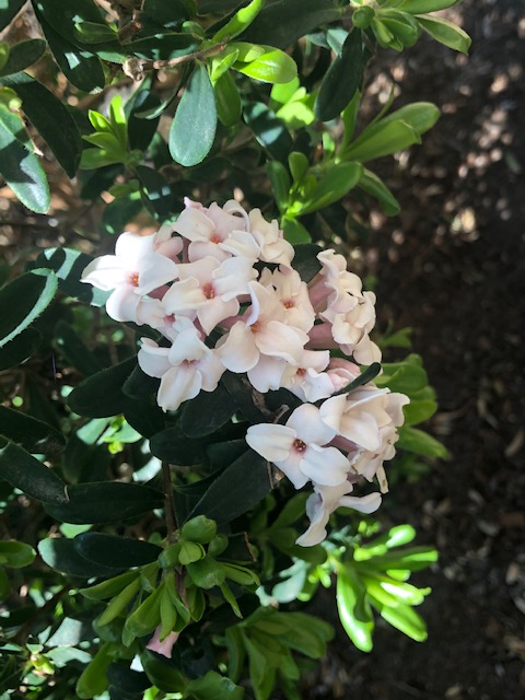 There’s more to spring blooms than color, as in the sweet scents that come from the daphne odora and rosemary bushes above.