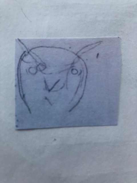 When I got home, my husband made sure I didn’t misjudge my work. “Your fish looks more like an owl than your owl. You need a model.” I followed his advice. Great art it’s not, but he does look angry enough to dive-bomb an innocent  jogger.