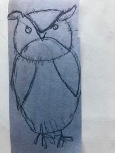 Obsessed with a recent experience watching a barred owl dive-bomb a jogger, I’ve become interested in owls and decided to draw one before our get-together.