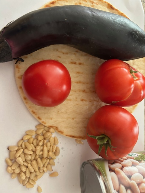 Tonight’s menu will involve roasted eggplant, torn-up toasted pita and a few other ingredients not usually associated with salads. All to accompany a Costco chicken.